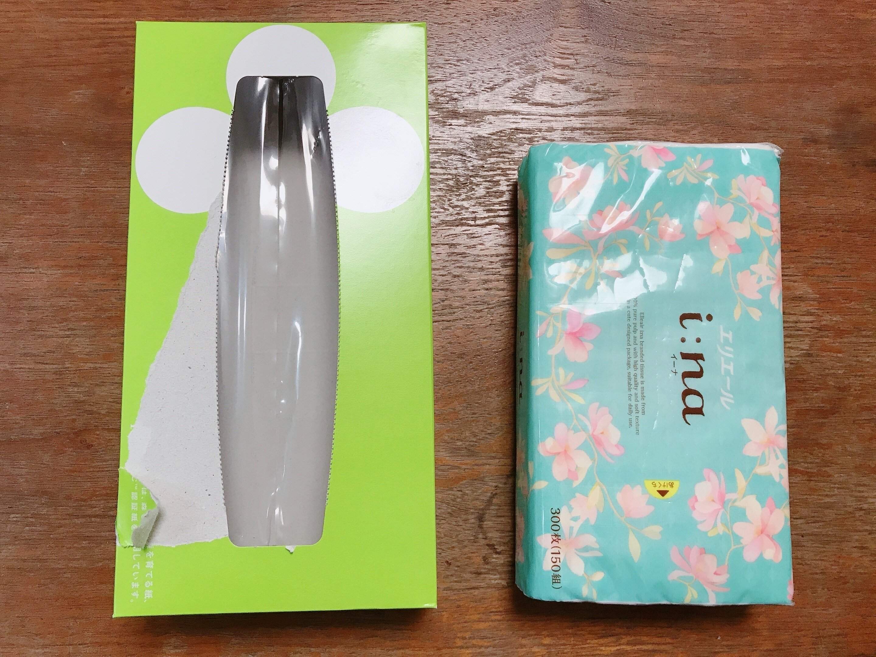 左の箱が通常のボックスティッシュです。