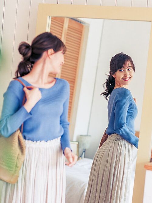 なかなか遠出できない今、ちょっとそこまでのお出かけでも、好きな服を選ぶとテンションアップ。ボディラインは後ろ姿まで意識して、下着もしっかり選びます