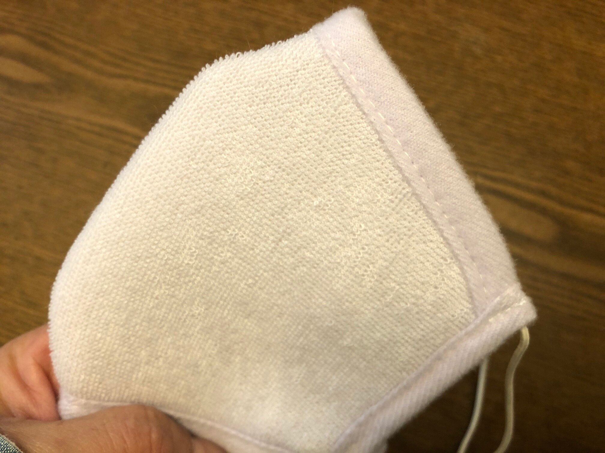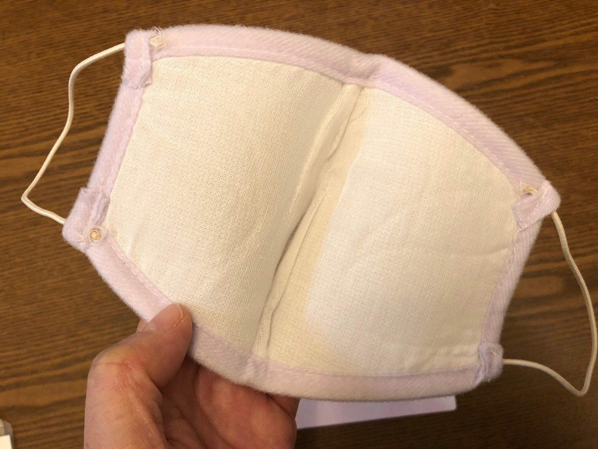 内側は肌触りの良いガーゼ生地です。綿100%なのでお肌に優しそう。表と内側の間にキルト芯のようなものが入っているのか、少し厚みがありしっかりしたつくりになっていますよ。