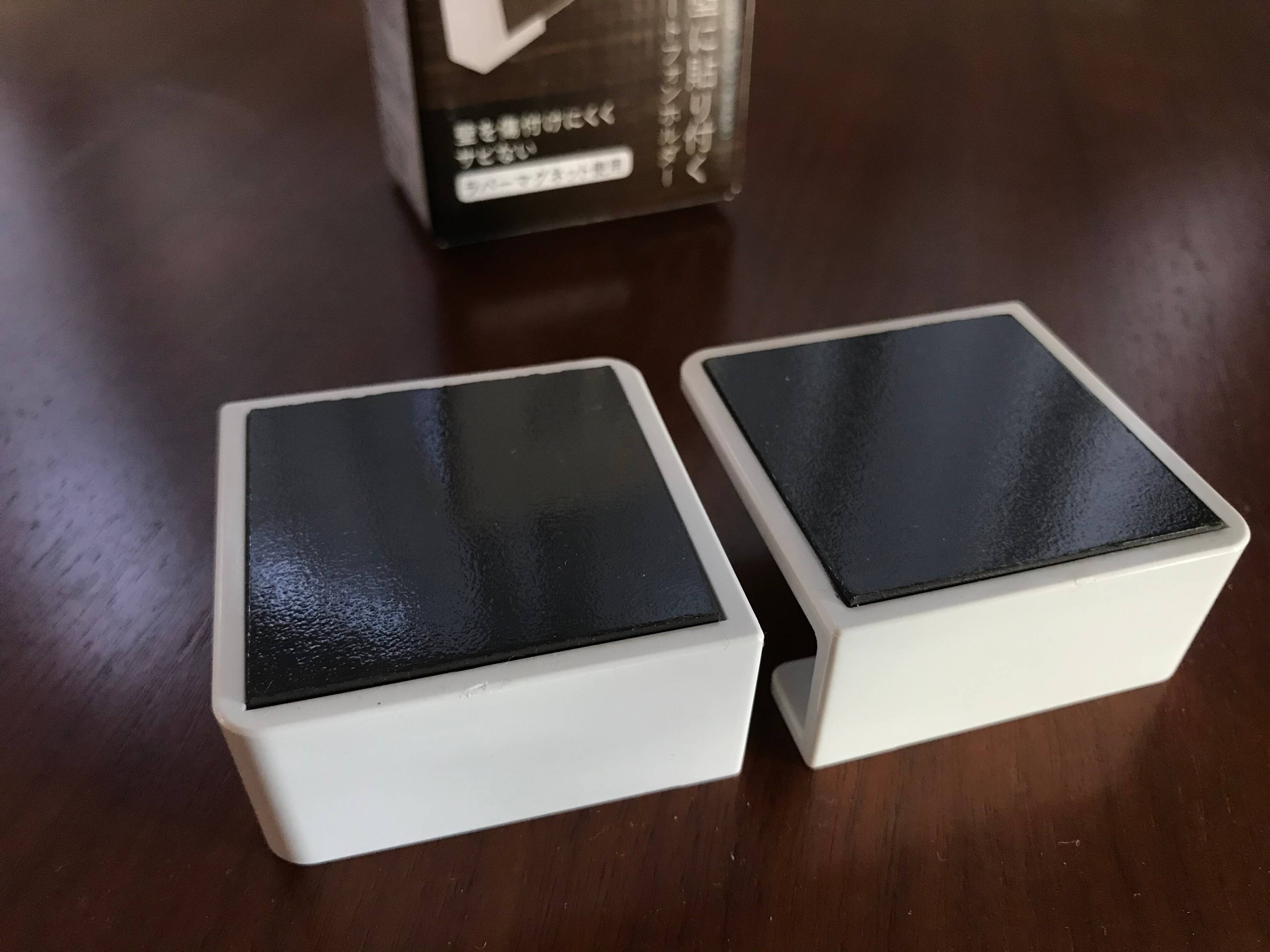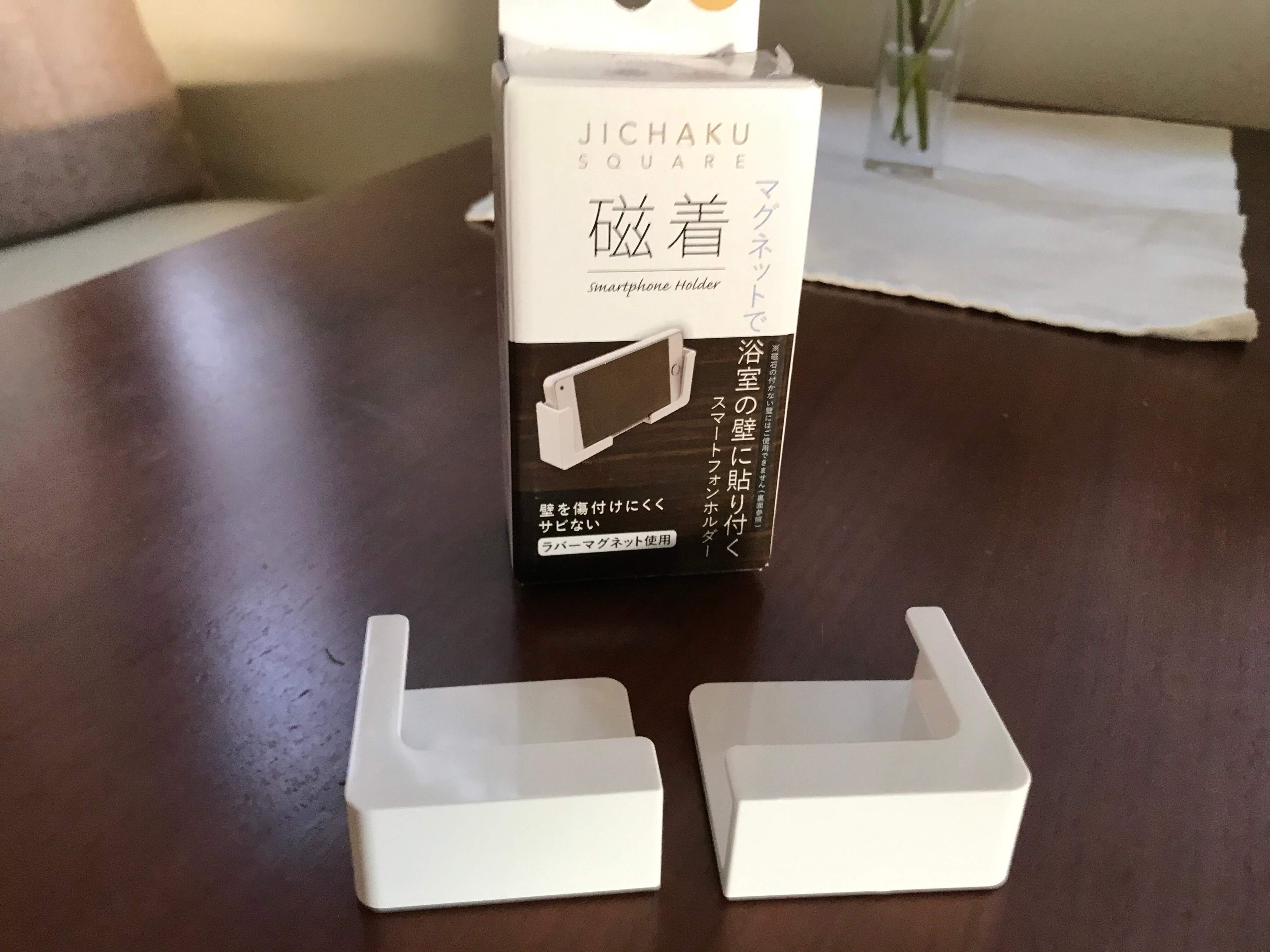 箱の中には1対の商品が入っています。「マグネットで浴室の壁に貼り付く」という商品ですが、使用する浴室の壁面に磁石がつくかどうか、必ず事前に確認が必要です。