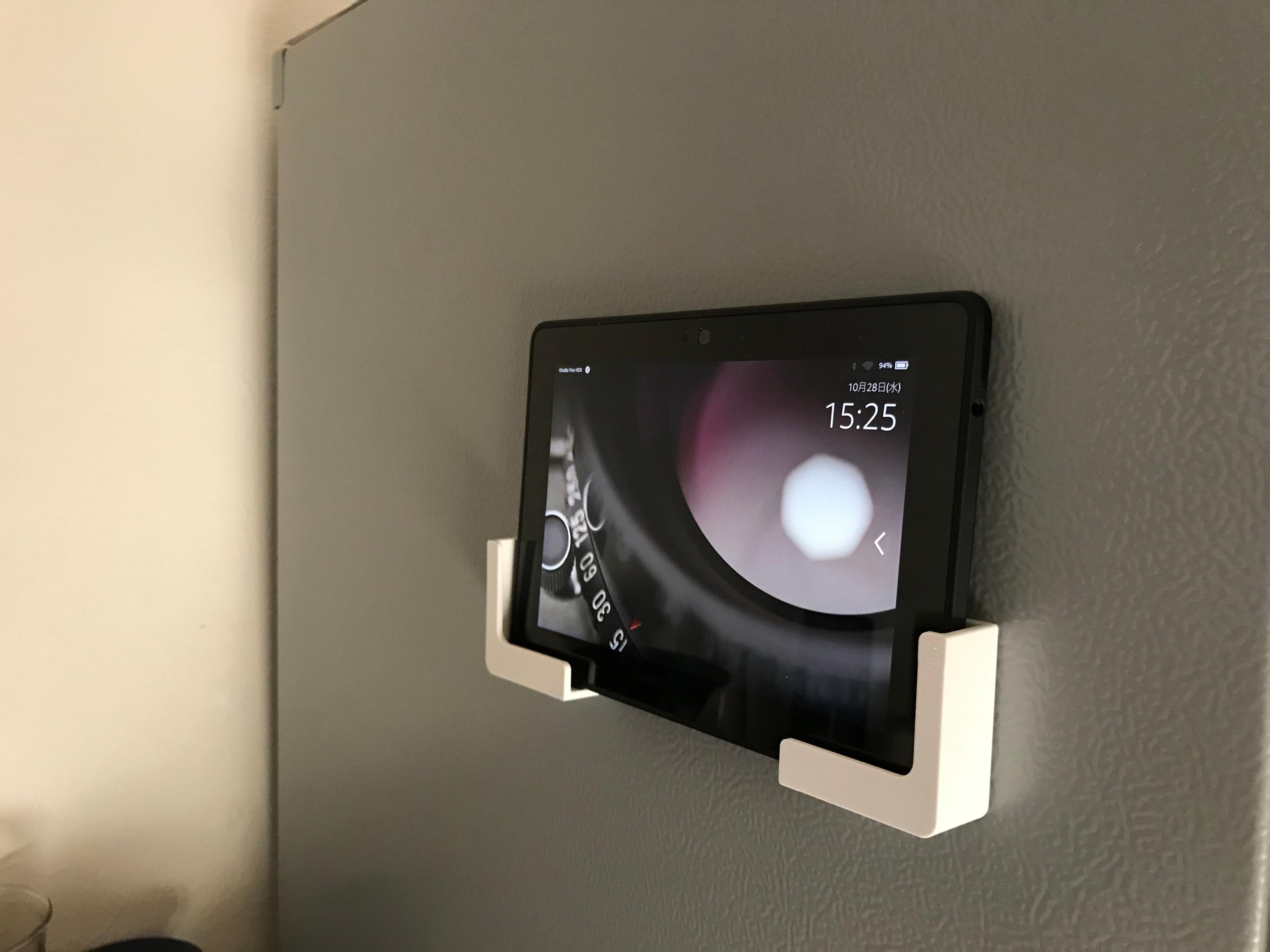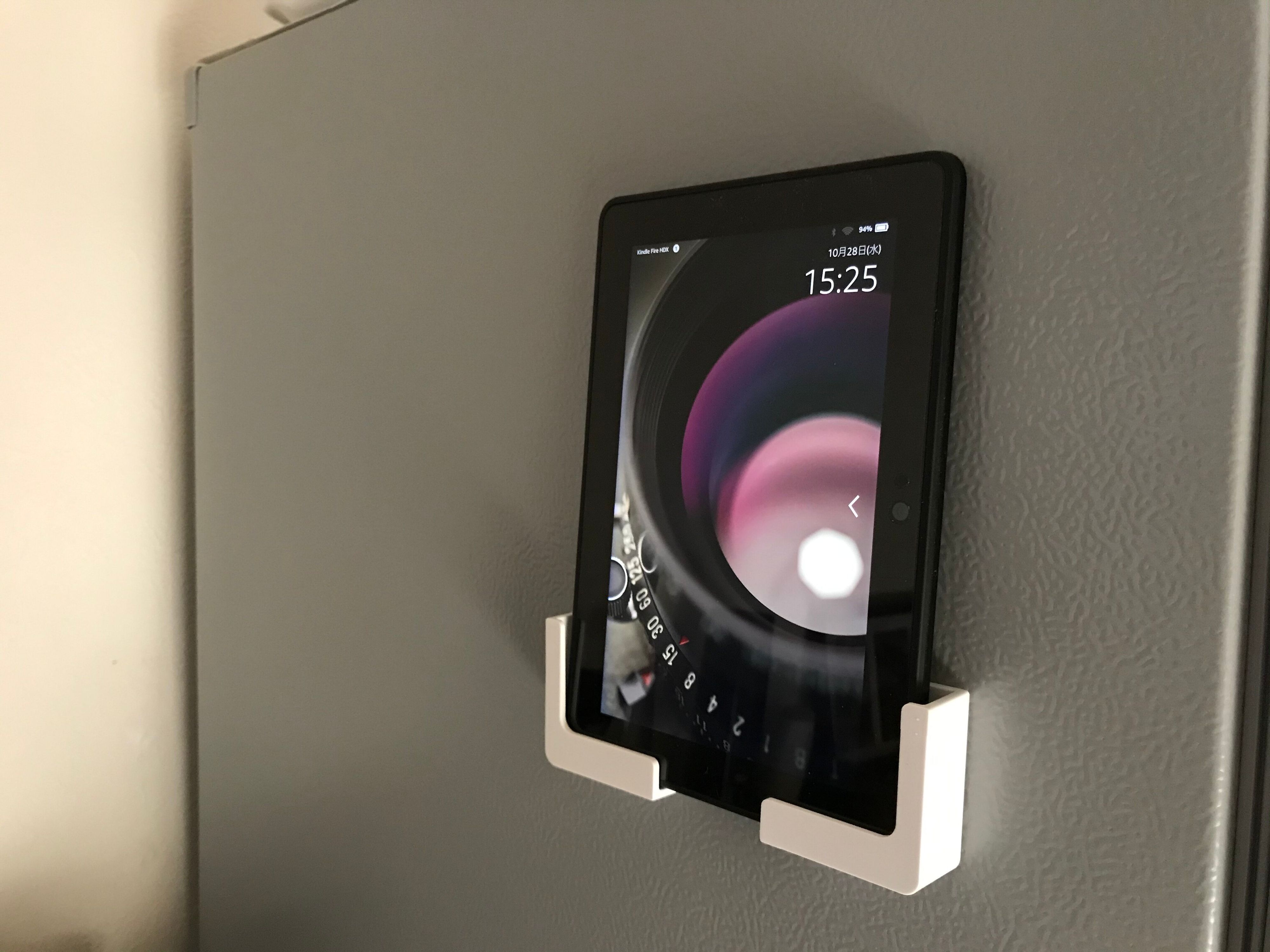 実はいちばん使いたかった方法はこれです。寝室の枕元に「磁着」を貼りつけてKindle置き場にしたかったんです。使用したテープは「魔法のテープ」と呼ばれる超強力な両面テープです。
