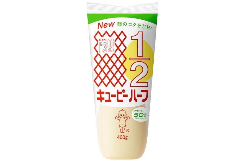 「キユーピーハーフ」は、独自の”マイクロエマルション製法”を採用。カロリー50%カット(キユーピー社マヨネーズ比)ながら、卵のコクをしっかりと感じられるのが特徴です。しかも、植物油を細かく均一にすることで、野菜とあえたときに野菜から出る水分を包み込み、サラダが水っぽくなりにくいという効果も! ただカロリーが低いだけじゃなく、野菜と相性がいいのも魅力です。