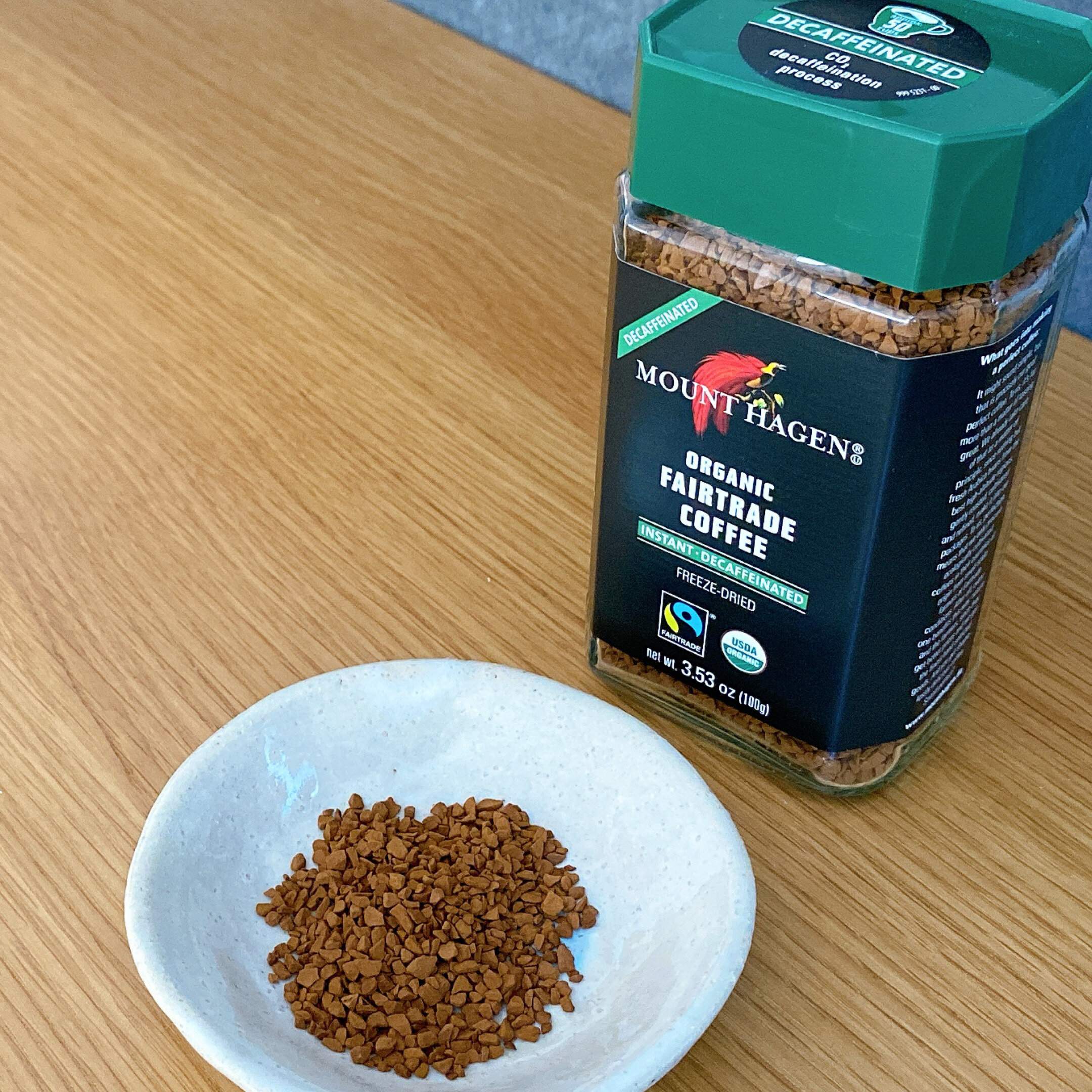 iHerbで購入できるデカフェコーヒー。デカフェというと味が薄いイメージですがこれはしっかり深いコクを感じます。味の種類としては、少し酸味が強め。豆乳や牛乳に入れてます。