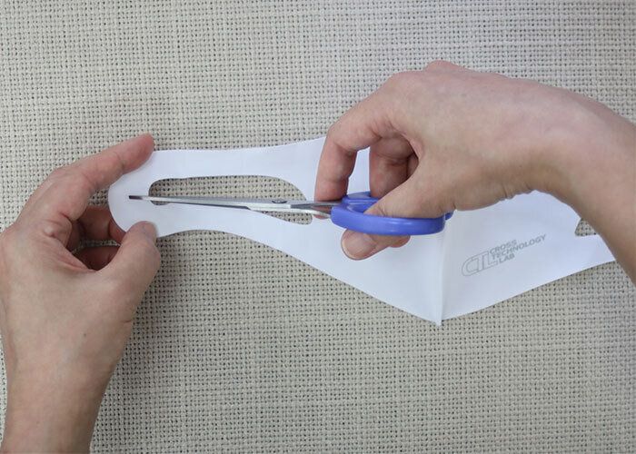 「アクティブシールド」は、のびのよさとフィット感も特徴のひとつです。もともと少し小さめで、女性はもちろん、小学校中学年くらいから使えそうなサイズ。男性などが着けて、小さいかな?と思ったときは、耳穴部分に切り込みを入れて、ジャストサイズに調整することもできます。伸縮性のあるニット素材であるにもかかわらず、ほつれにくい生地なので、ハサミを入れても大丈夫!