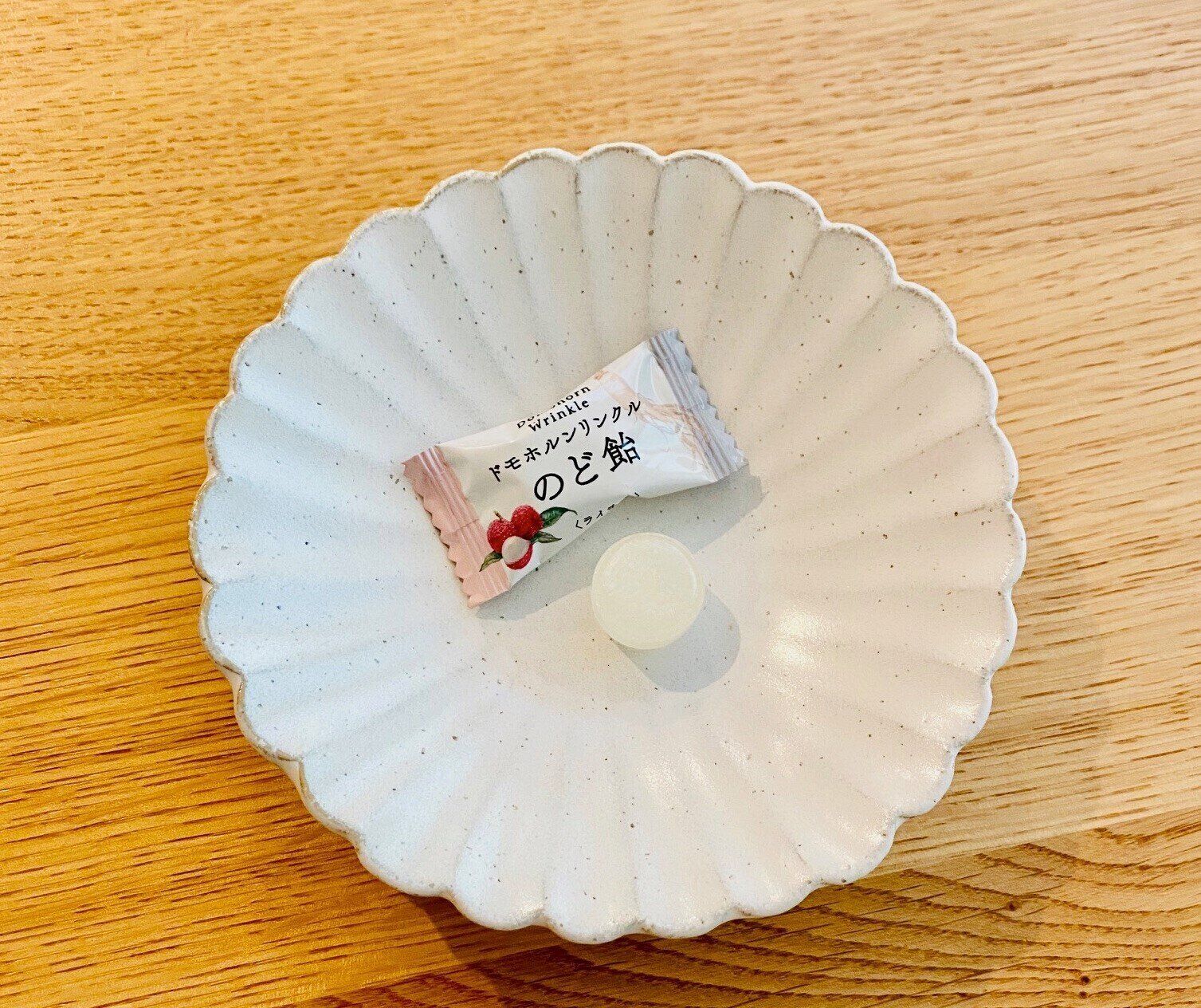 実際に舐めてみると、口に入れた瞬間ライチの味が広がって、あとからほんのり漢方と思われるスーッとした味がやってきます。でも、苦味は感じず、最後までおいしいライチ味ののど飴という感じでいただけました。