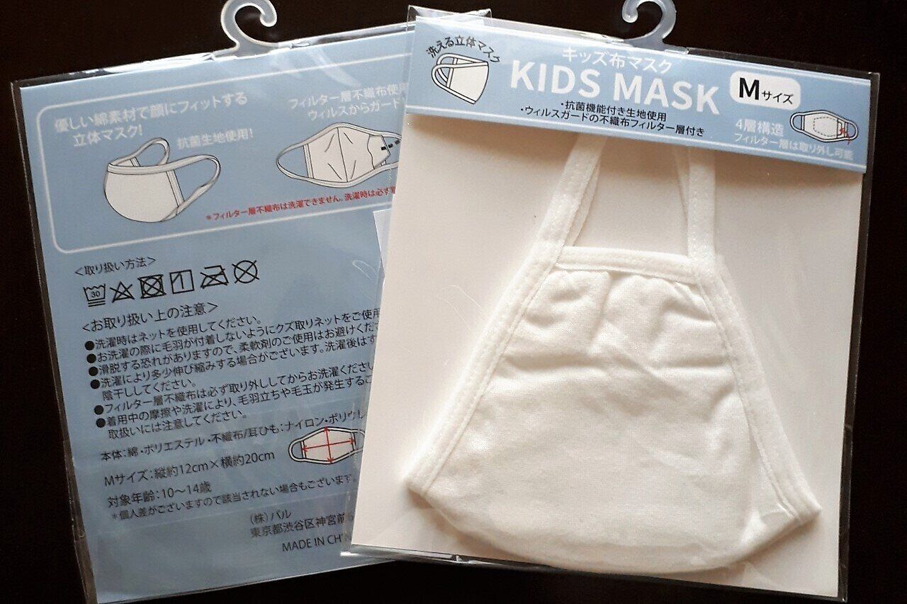 子ども用の商品は、抗菌機能付き生地使用(綿・ポリエステル製)が1枚入りで税込330円です。