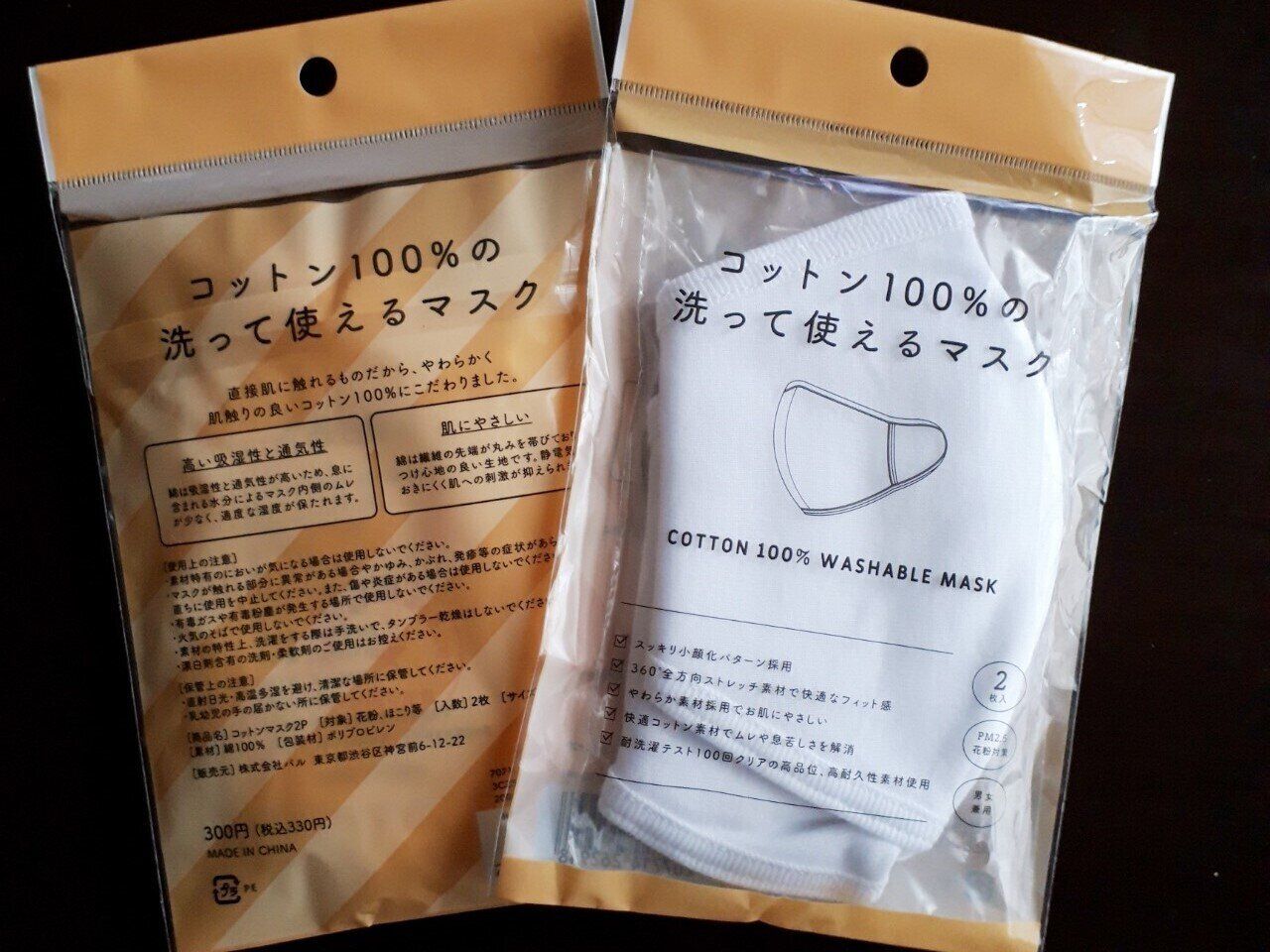 100回洗って使えるマスクが2枚入りで税込330円!お得だと思いました。