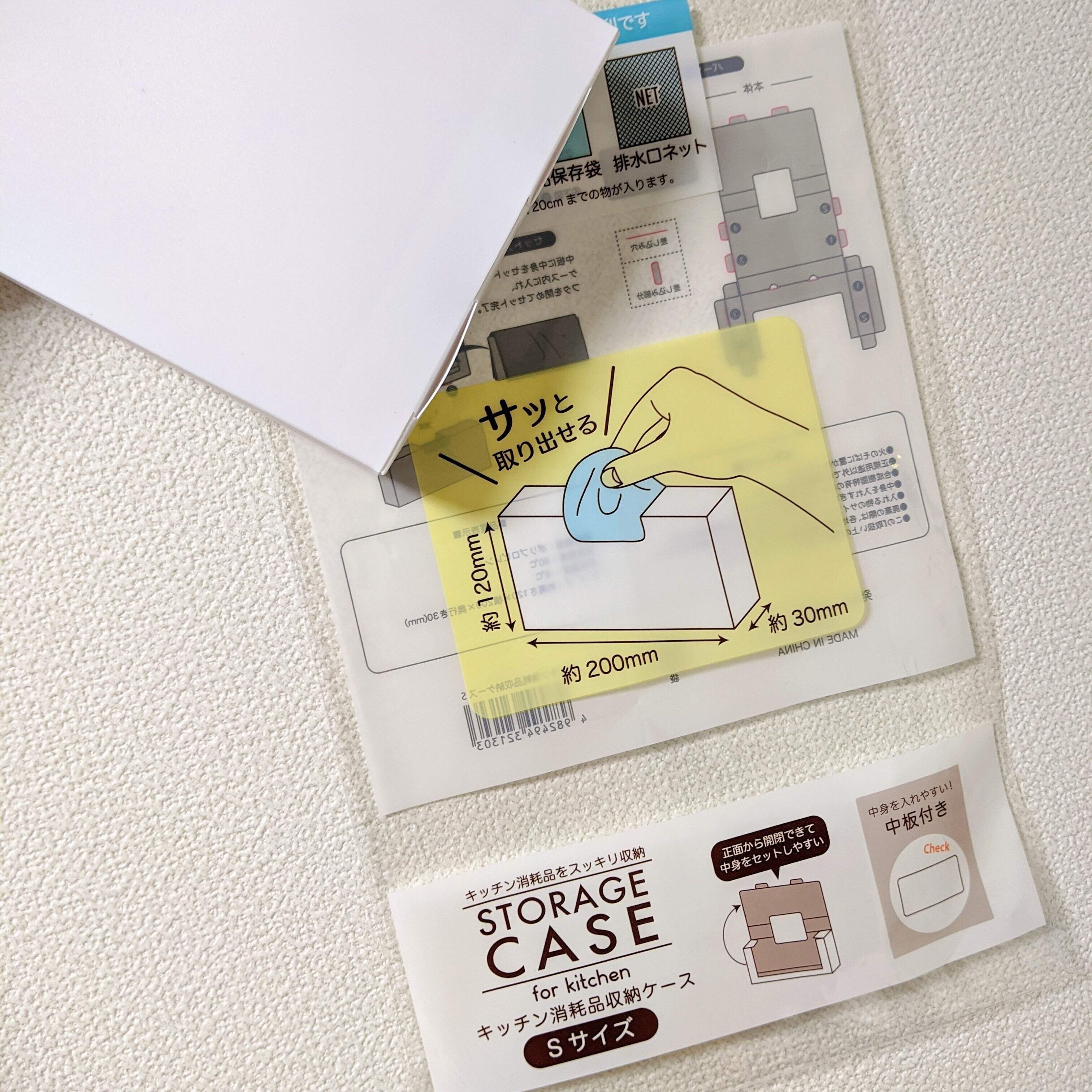 パッケージにもあるように排水口のネットだったり、保存用のポリ袋だったりをスッキリ、しかも取り出しやすく収納できちゃうスグレもの。