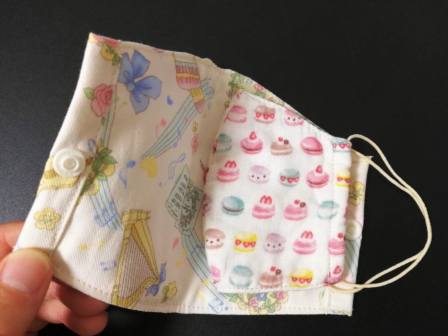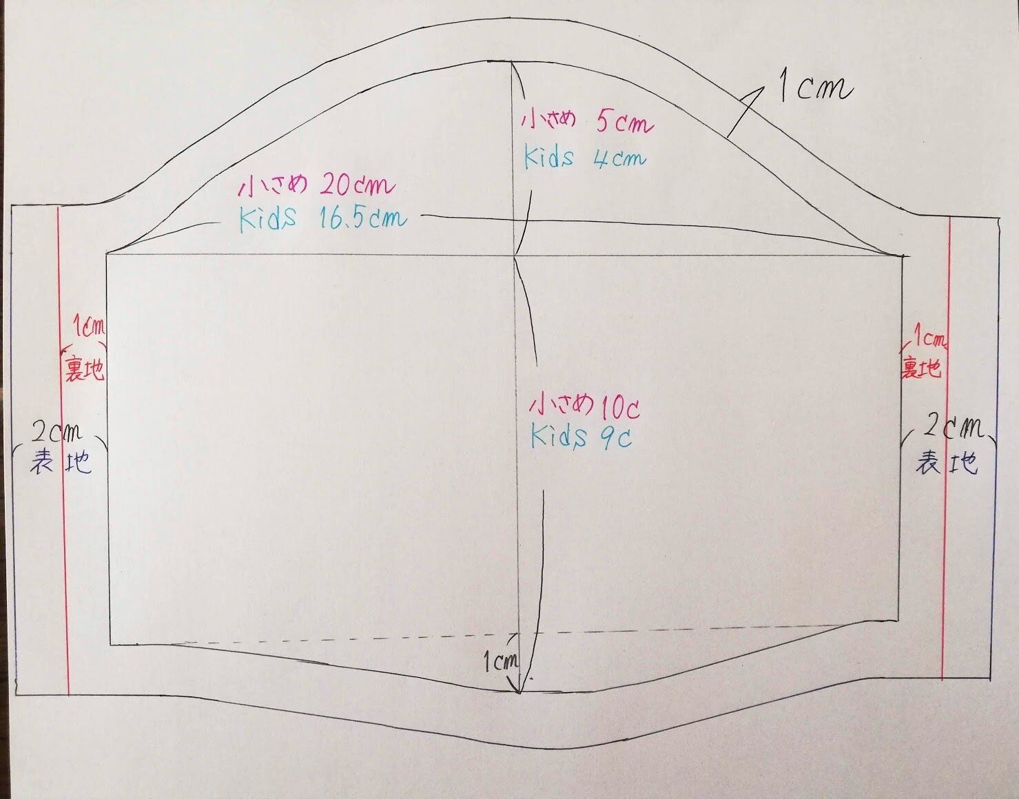 今回は、自身が持っている立体マスクを参考に型紙を取ったオリジナルなので、ものによって多少の調整は入ってくるかもしれません。