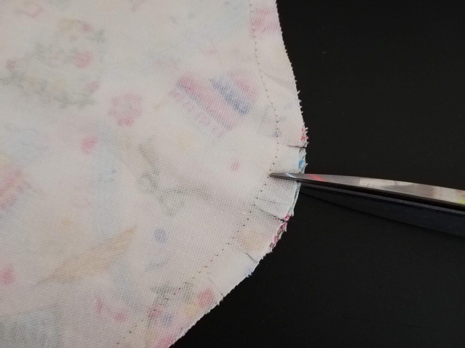 カーブがついているところは、縫い目のギリギリまで切り込みを入れます。