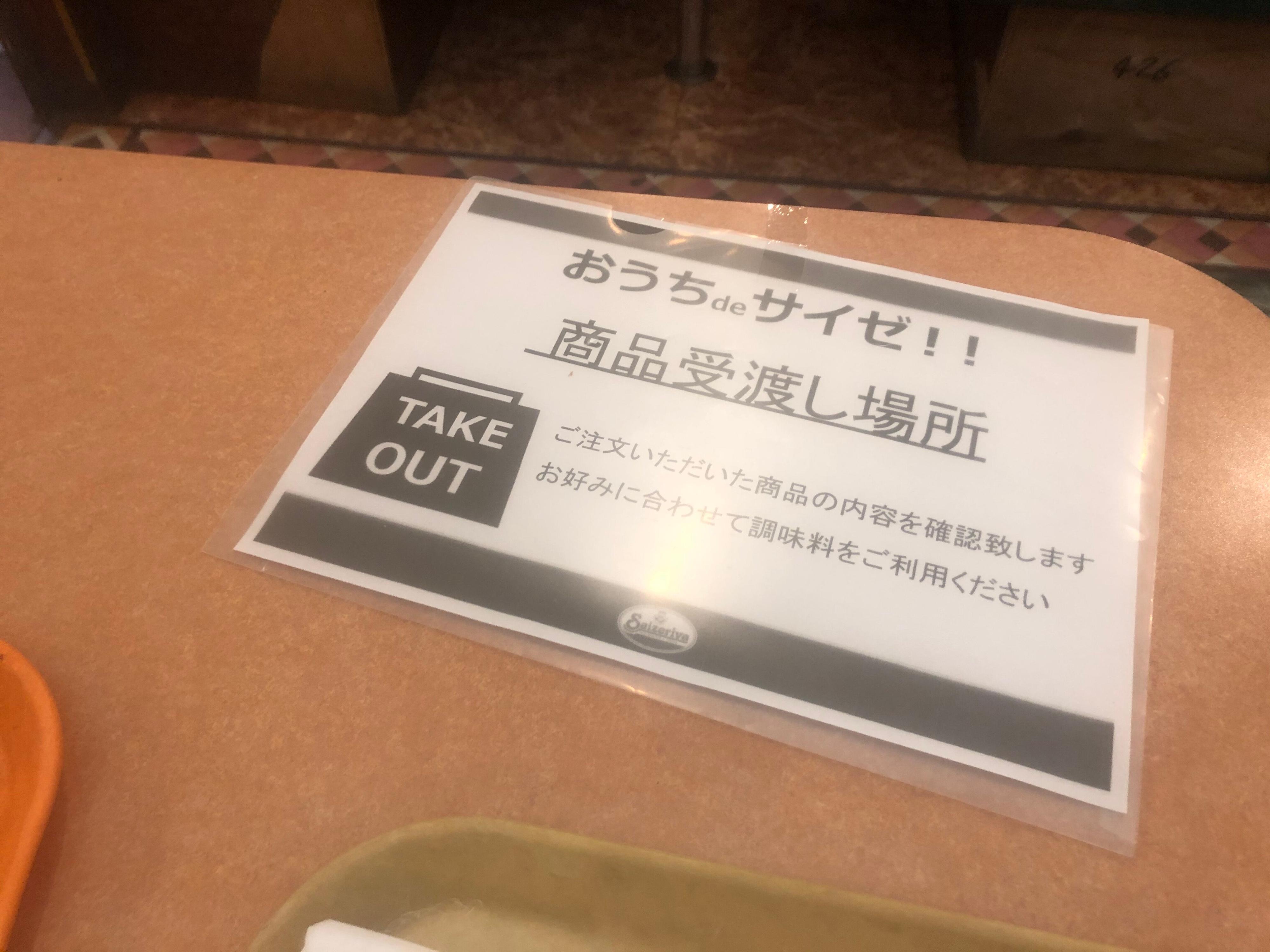 わが家の最寄りのサイゼリヤでは商品受け渡し場所が設置されていて、その席で頼んだ商品の確認をしました。