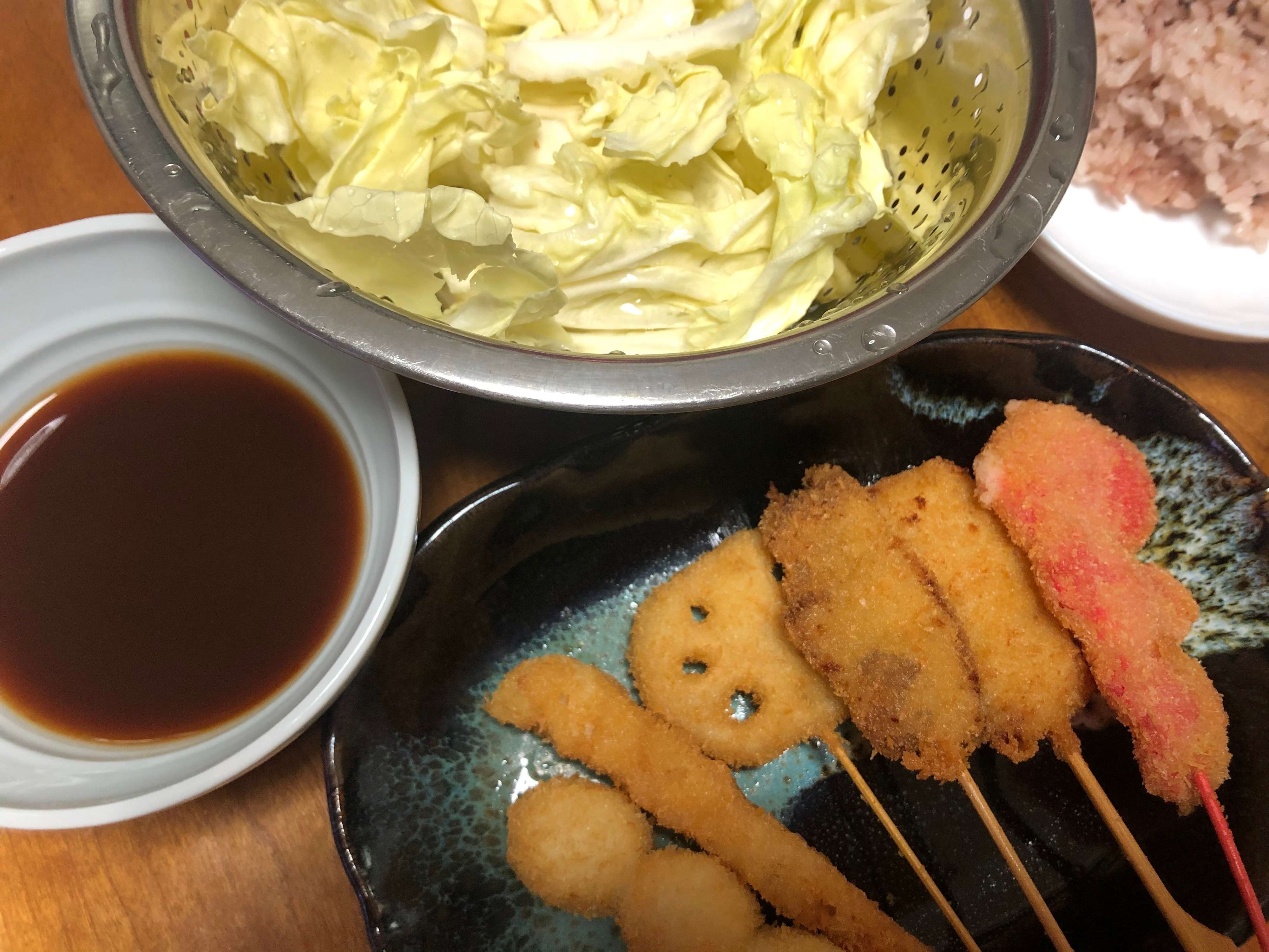テイクアウトで買ってきておうちで「串カツ田中」を楽しむ場合のポイントは、やっぱりキャベツ!店舗では新鮮なキャベツが無料で食べ放題なんです。これはおうちでもマストですね。