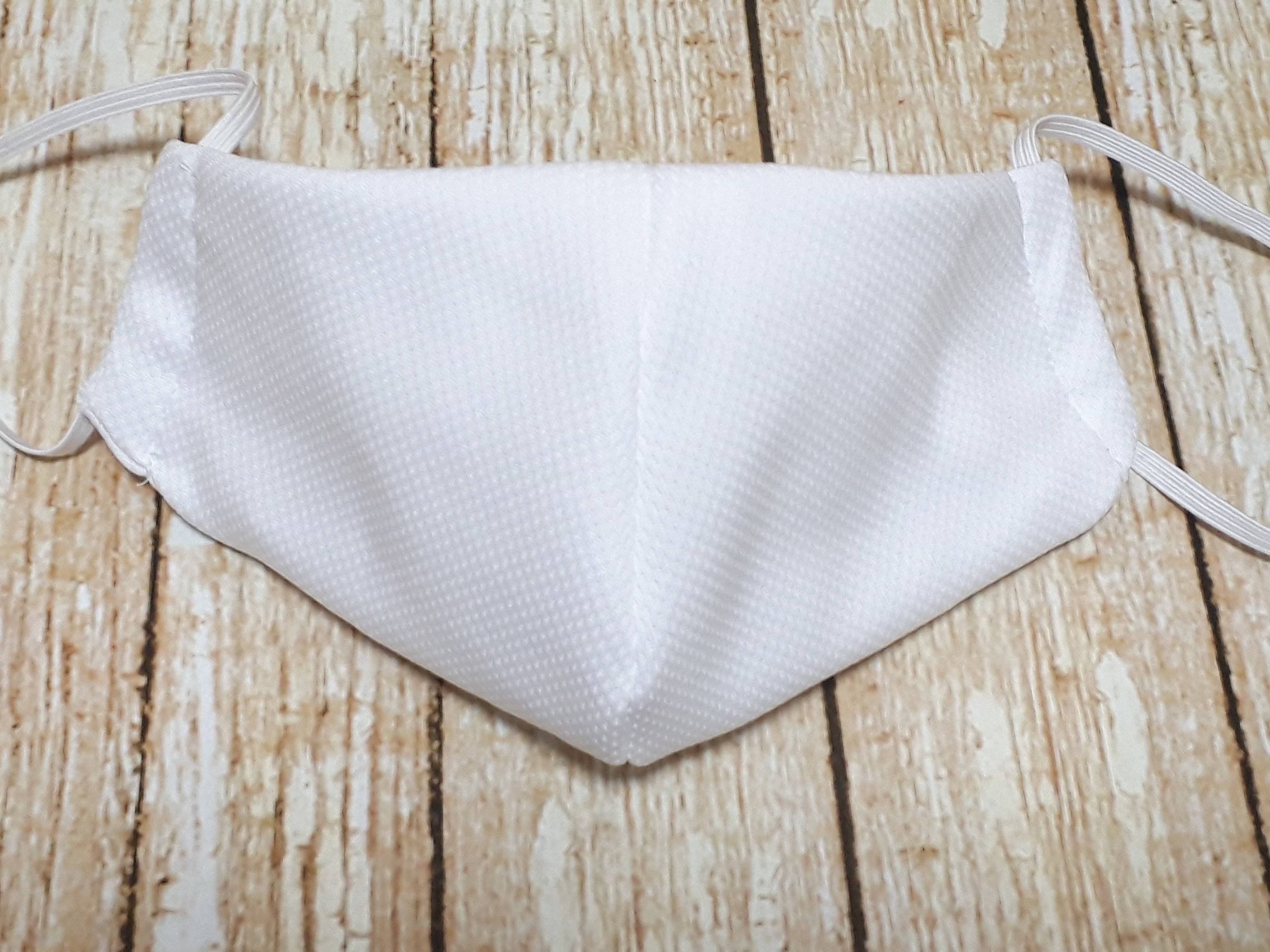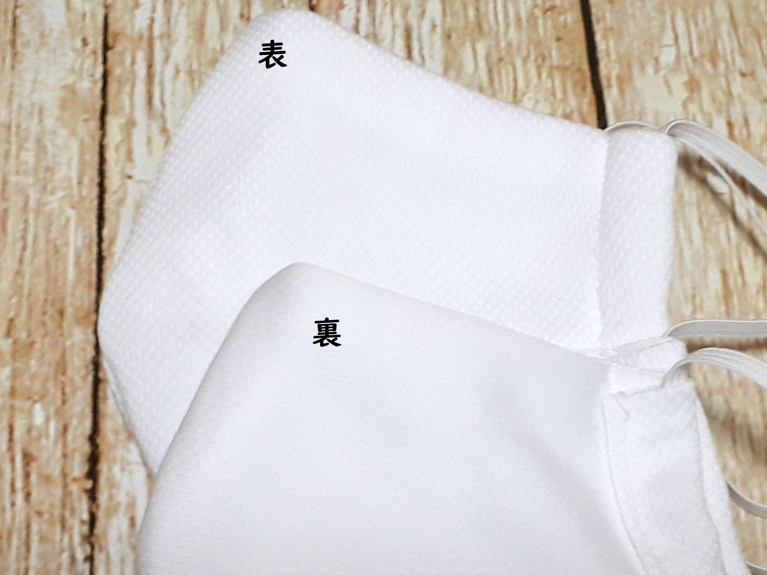 白い生地なのでわかりにくいですが、表はTシャツの表面が、裏地はTシャツの裏面(内側)が肌にあたるように組み合わせて縫いました。140cmのTシャツで、大人用1枚と子ども用2枚、計3枚のマスクをつくれました。私の個人的な感想ですが、サラッとしていてつけ心地がよく、不織布マスクのような蒸れは感じません。