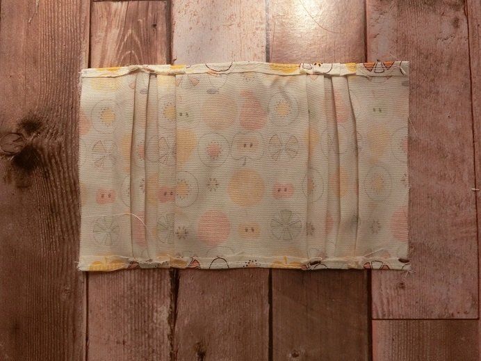 始めから縫いしろ1cmでしっかりアイロンをかけると、縫うのは1回ですむかもしれませんが、プリーツをキレイに縫う自信がなかったので、5mmくらいのところで一度縫うことにしました。