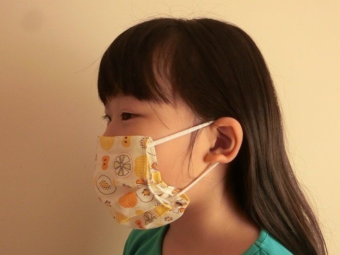 使い捨てマスクとマスクカバーのプリーツも同じなので、つけ心地はバッチリ!!今回は子ども用のマスクカバーをつくりましたが、同じように女性用も大人用もつくることができます。