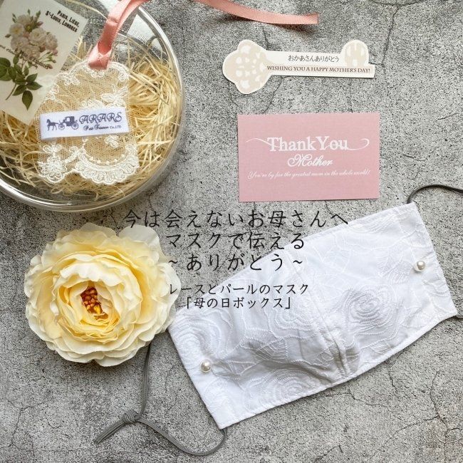 レースやパールを使った上品なマスク「母の日ボックス」は3,850円(税抜)で販売中です。