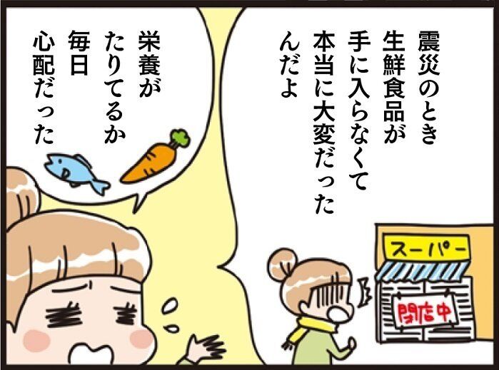 災害時は物流が止まったり、買いだめが起こったり、必要な食材が手に入らないことが考えられます。とはいえ、災害時用の特別な非常食は、食べ慣れず、ストレスになることも。ローリングストックの最大の利点は、「いつもと同じ物」が備蓄されていること。ふだんからおいしく食べながら、消費と備蓄を繰り返すから、急な災害時にも慌てることがありません。