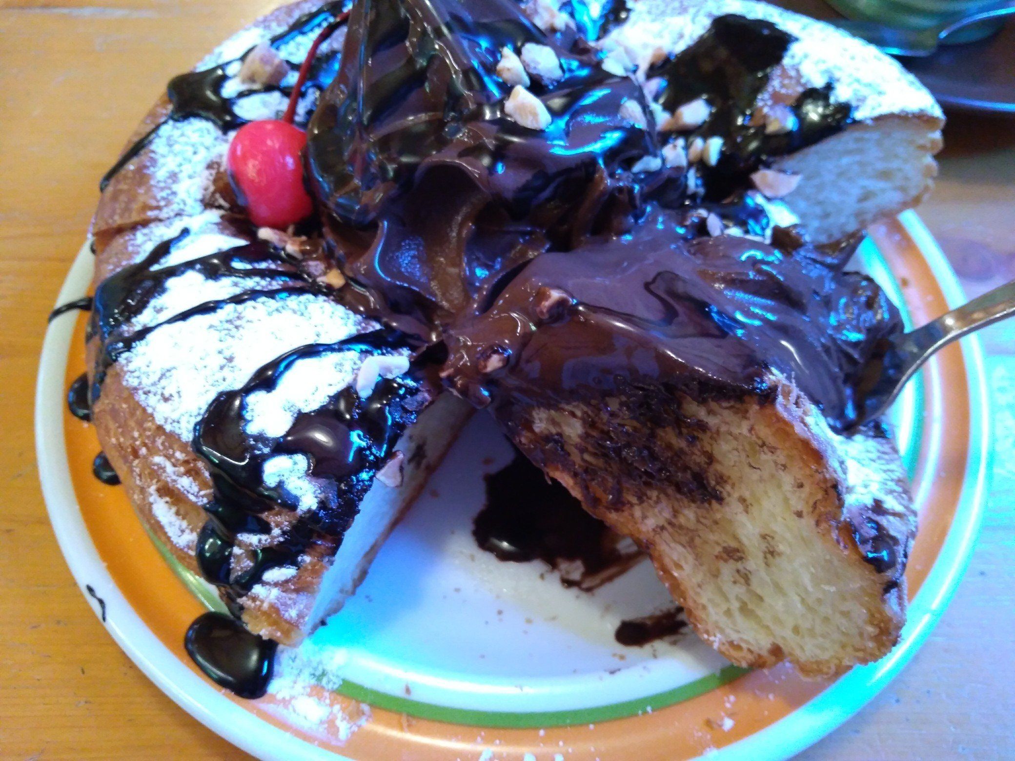 トッピングされたチョコレートソースはビターめで、全体的に味を引き締めている感じ。