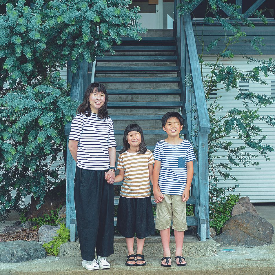 「しましまの服が好きで、いつも着ています。ボーダーのお母さんと呼ばれるほど(笑)。自分らしくて落ち着くんです」。家族全員しましまという日もあるのだとか