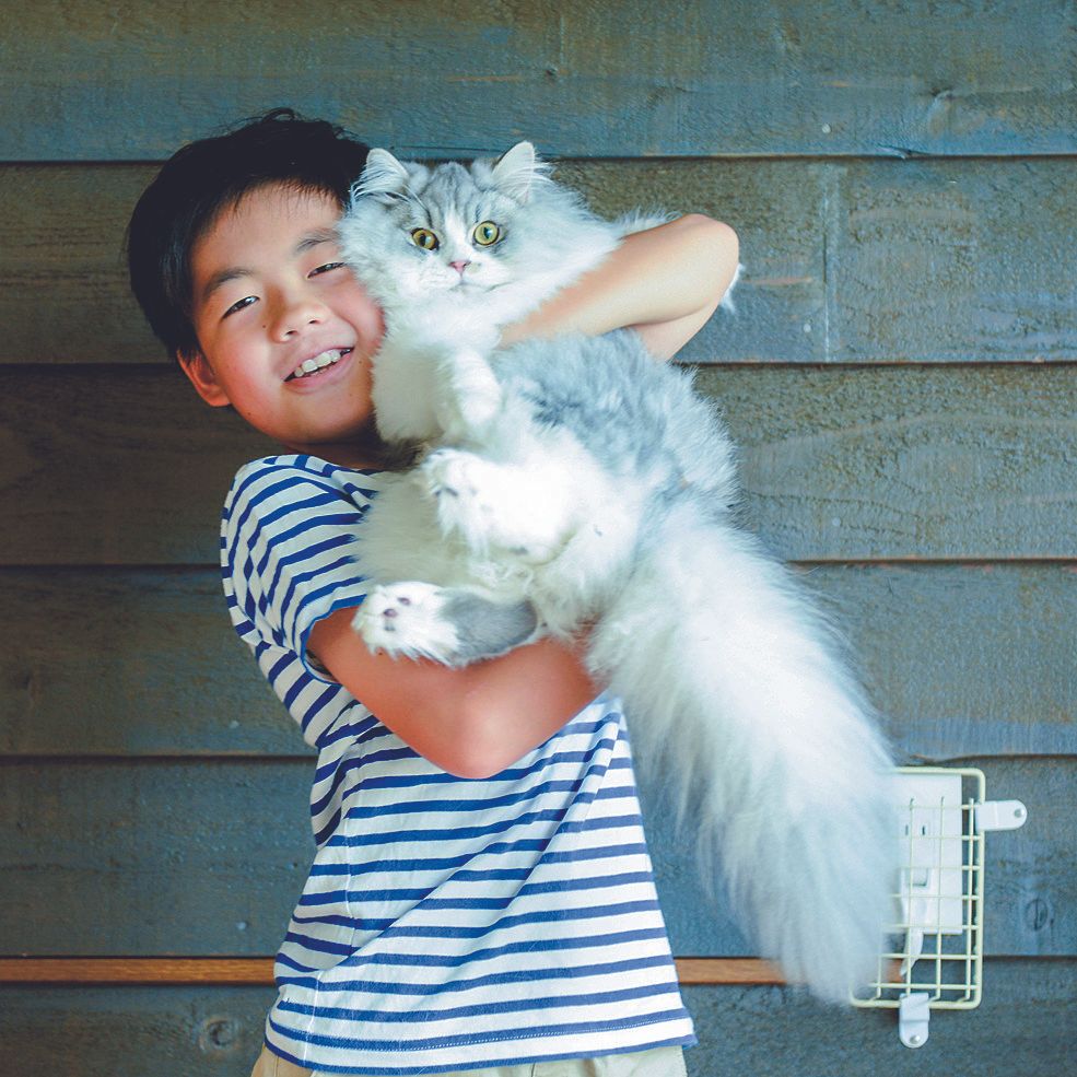 長男のかいくんは、猫のにこちゃんが大好き。犬も飼っている動物大好き一家です。猫をモフモフさわったり、顔をうずめたりするのも大好きで癒やされる時間だそう