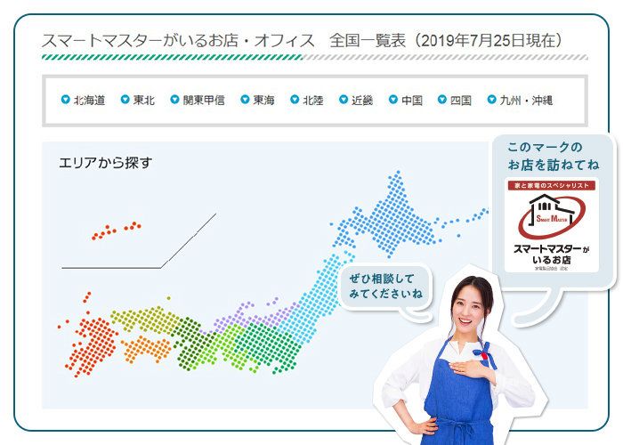 〝スマートマスター〝に直接、相談できるお店は全国すべての都道府県で1000カ所以上。家電販売店や、住宅販売会社・工務店、電力・ガス関連などと、広がっています。一般財団法人 家電製品協会のホームページで検索できるので、近所の相談できるお店を探してみましょう!