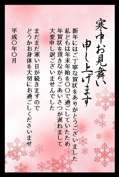 寒中見舞いは関東は1月7日以降、関西は1月15日前後から