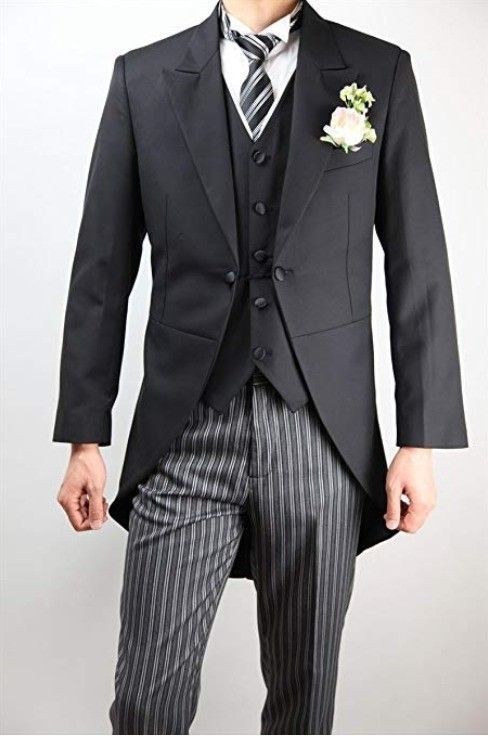 上着が後ろに長くなったデザインが特徴。上着の色は、黒かグレー、ズボンはグレーと黒のストライプ、または白と黒のストライプのもの。一般的に花嫁花婿の父親や兄弟、両家の既婚の伯父・叔父が着用します。