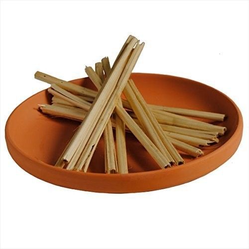 「迎え火」と「送り火」で使う「おがら」は、「ほうろく」と呼ばれる素焼きのお皿の上に折ってつみ重ね、火をつけて燃やします。「精霊棚」、「ほうろく」、「おがら」は仏壇店はもちろん、最近ではネット通販でも買うことができます。