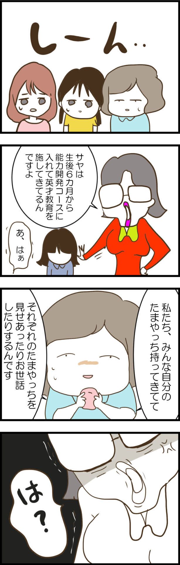 「たまやっち」で遊ぶと聞いたサヤちゃんのお母さんは、「たまやっち」を持っていないサヤをのけものにするつもりなの!?と激怒。仕方なくりえちゃんが「たまやっち」を貸すことを申し出ます…。