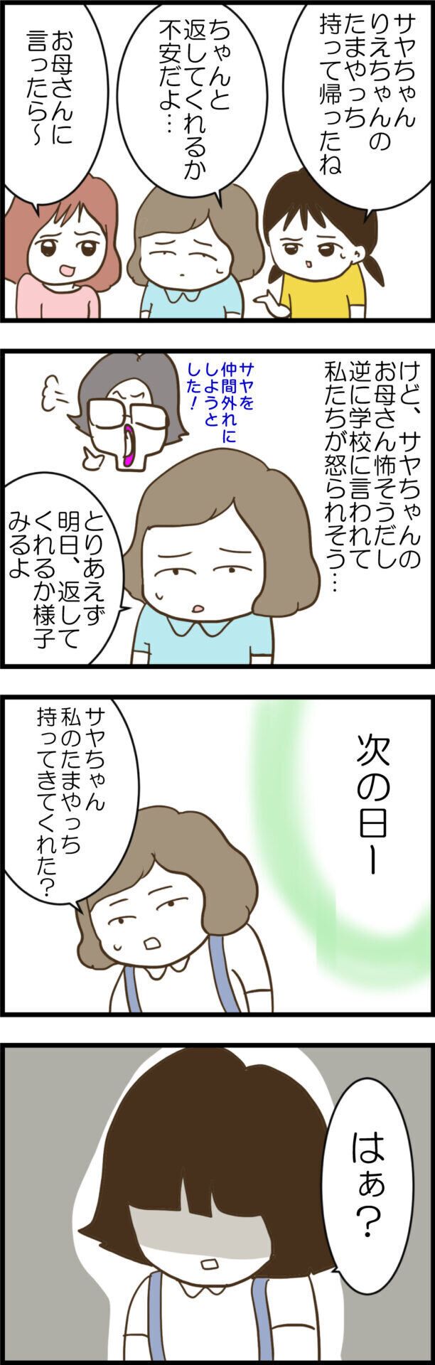 次の日、りえちゃんが「たまやっち」を返すよう言いましたが、サヤちゃんはごねて返してくれそうにありません…。