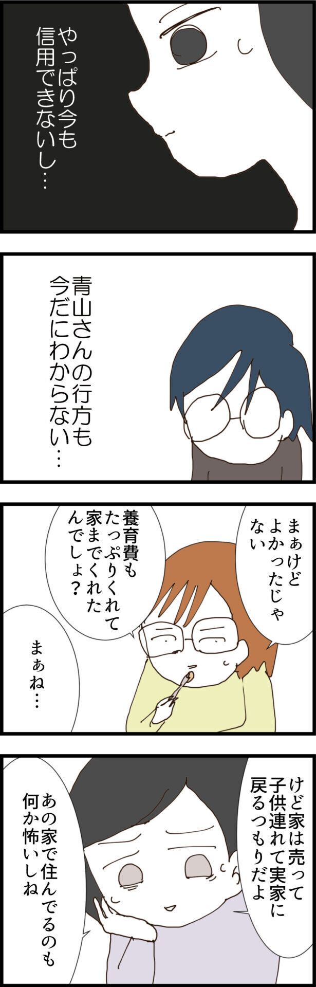結局、1回だけしか会っていないマユさんに、青山さんはなぜここまで固執したのか真相は闇のままですが、離婚して家を売却し子どもと実家に戻ることで、やっとマユさんは平穏無事な生活を手に入れられそうです。1つの出会いでここまで人生が狂うとは、本当に人生は何が起こるかわかりませんね。