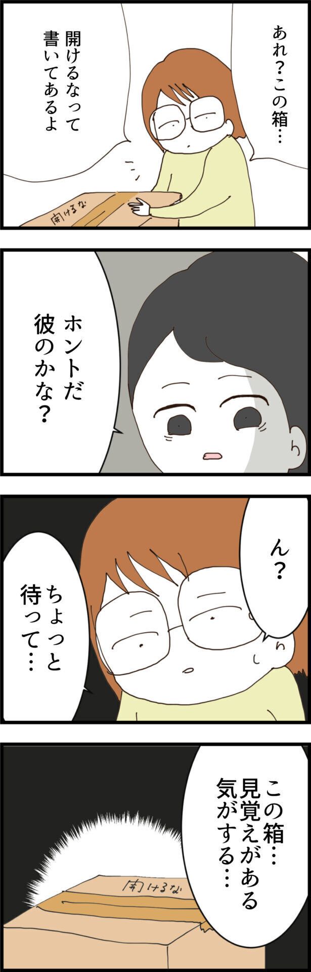 マユさんは妊娠していたため、マユさんの引っ越しを手伝いに来てくれたケイさん。そこで、「開けるな」と書いてある荷物を見つけてしまいます。しかもその箱は、どこか見覚えもある気がして…。順風満帆な生活を送っていた2人ですが、どうやらまた、一波乱ありそうな予感ですね。