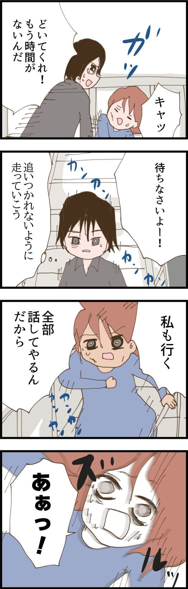 妻に追いつかれないよう走り出した彼を追いかけ、慌てて階段を降りた彼の妻は階段を踏み外してしまい落ちてしまったそう。外傷は大したことなかったものの、今も意識が戻らず病院にいるため、彼は結婚式に行けなかったとアオイさんに打ち明けました。しかし、それを聞いたアオイさんは、なぜか彼の手を握りしめ…。