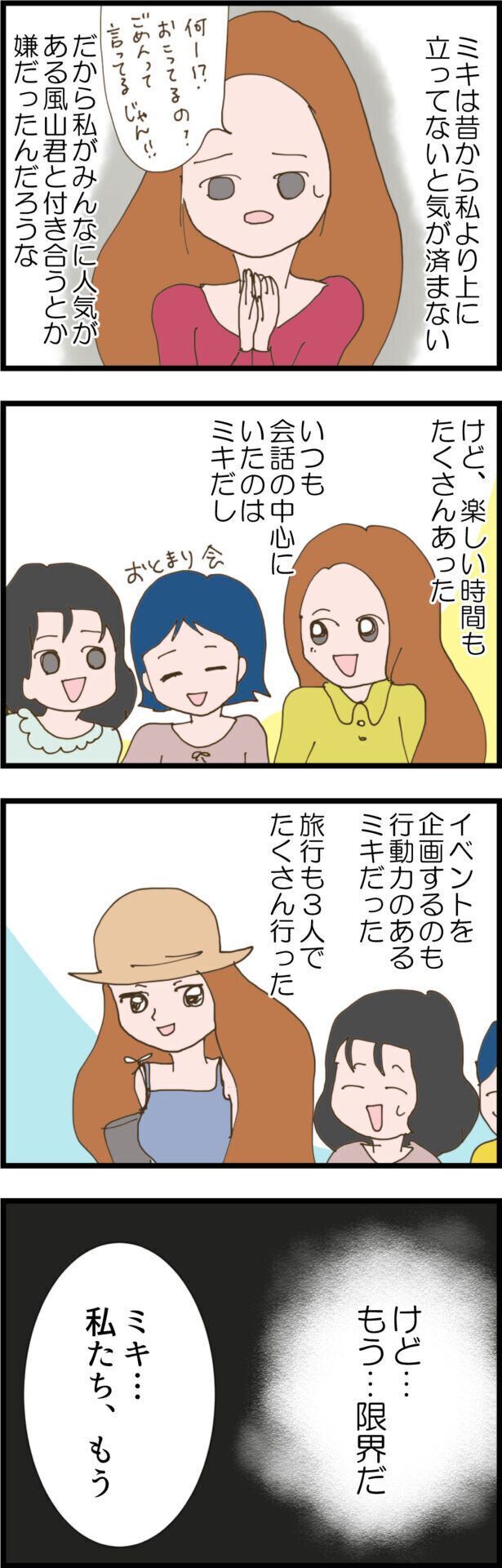 すずさんの好きな人が風山くんだと知っているはずなのに、なぜかミキさんは風山くんに告白。しかしミキさんはふられたようで、「ザマァ」と思うすずさんでしたが、結局それが原因で告白すらできずに初恋は終わりました。ミキさんとは楽しい思い出もありますが、いつもどこかで見下されていた感が否めなかったすずさん。とうとう、ミキさんに本音を話しだします。