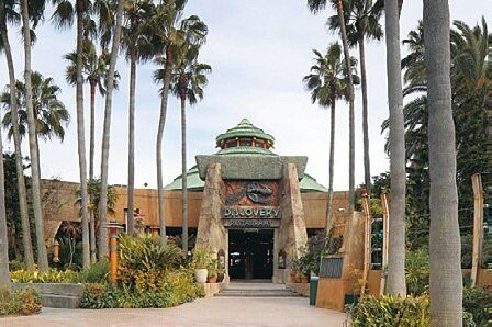 映画「ジュラシック・パーク」に登場するメイン施設の「ビジターセンター」をリアルに再現した外観が大迫力!映画さながら、内部には巨大なティラノサウルスの化石が展示されています。