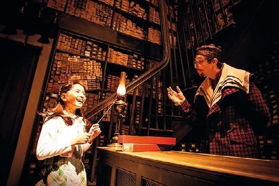 無数のつえの箱が天井まで高く積み上げられたほこりっぽい小さな店。ここではつえの番人である「オリバンダー」と一緒に、「つえが魔法使いを選ぶ」様子を体験できます。