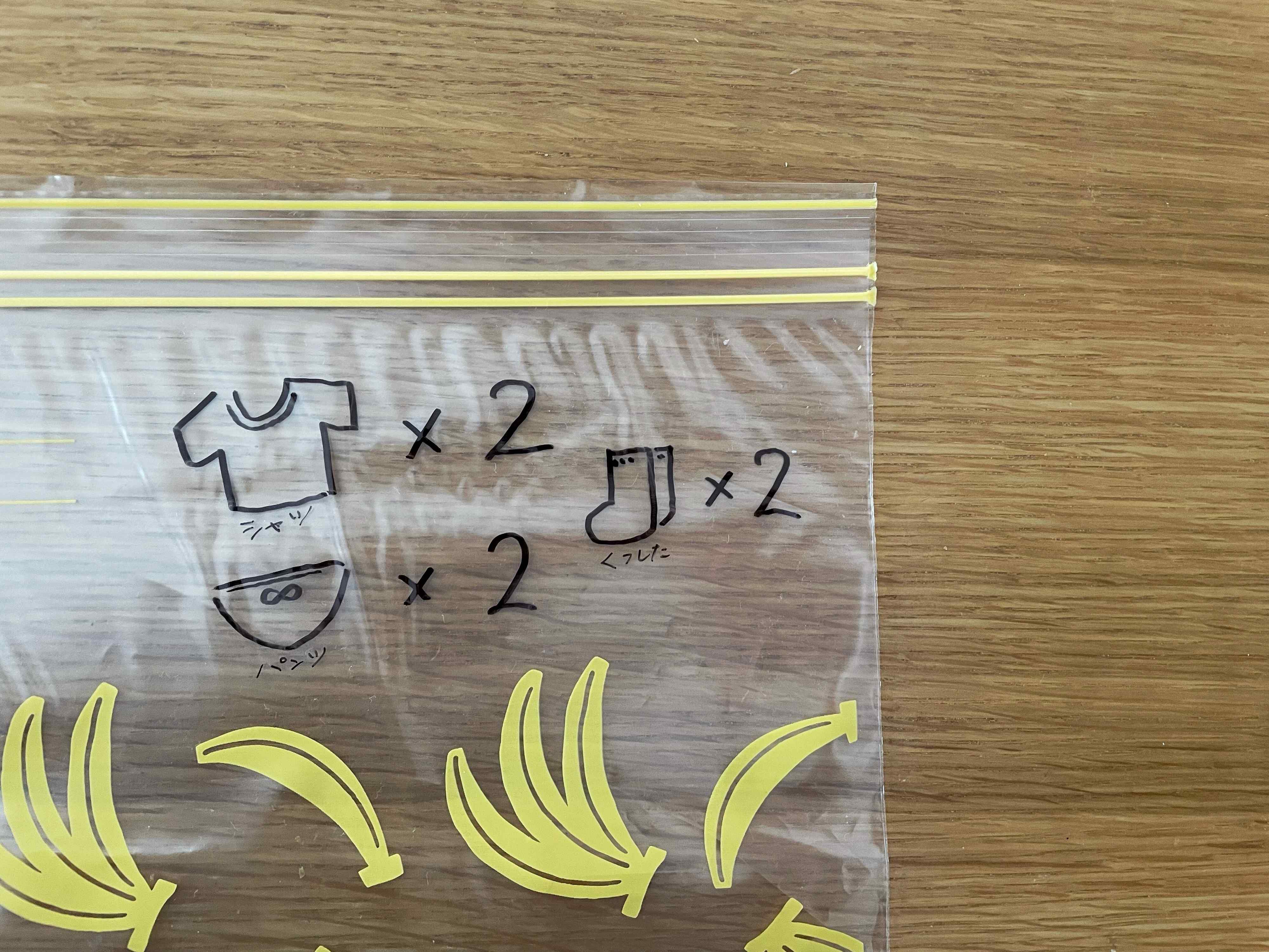何を入れたかすぐに分かるように、袋にイラストと枚数を描いています。