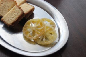 レンコンはシャキシャキとした食感で、ゴボウとニンジンはややかたく、ハンバーグと違う歯ごたえで変化をつけてあります。