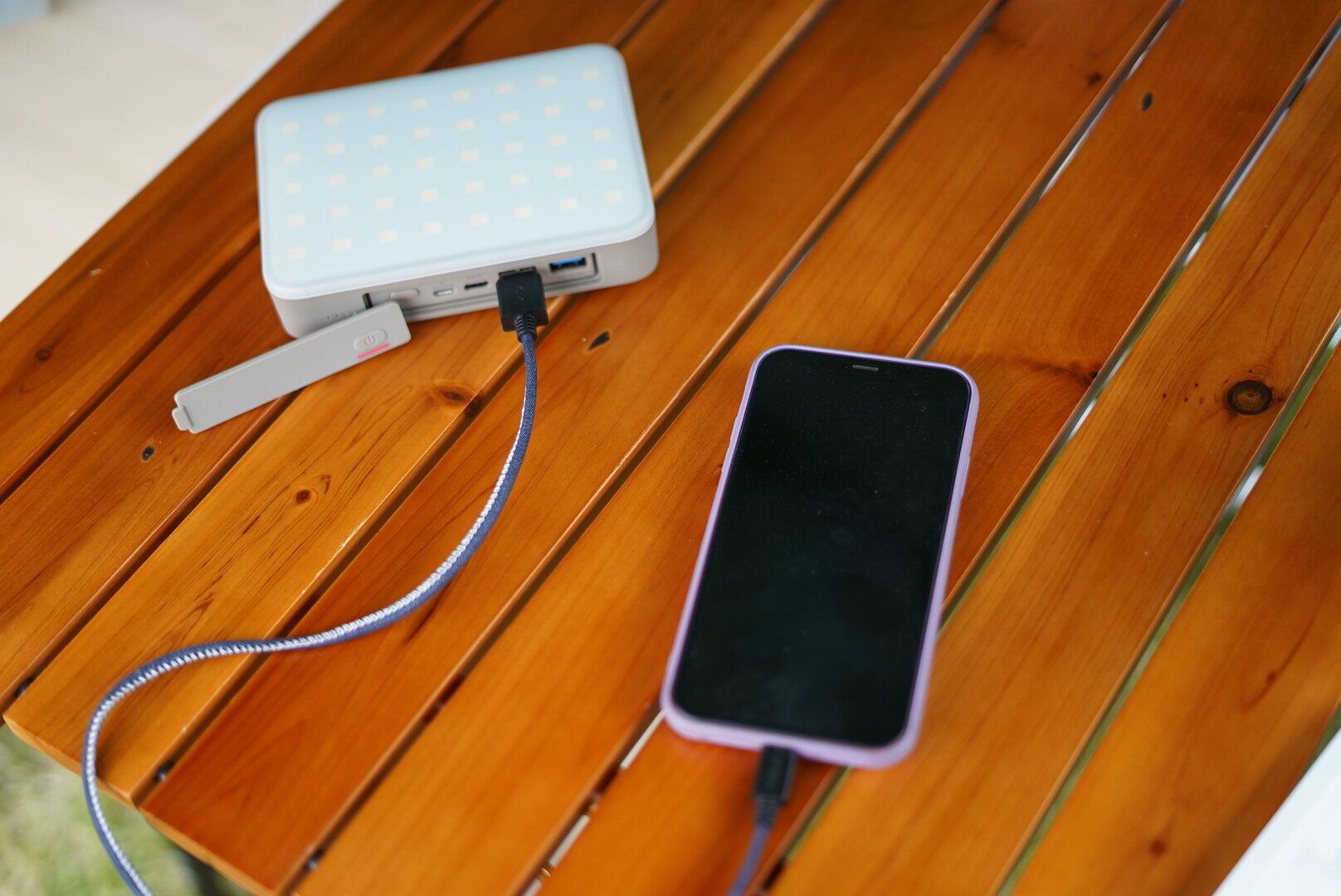 ランタンだけでなくモバイルバッテリー代わりに使用することも可能◎ スマートフォンなどの機器であれば急速充電することが出来るので、キャンプ先での充電切れの心配いらず♪私自身も設営中やご飯の支度中によくスマートフォンを見せる為