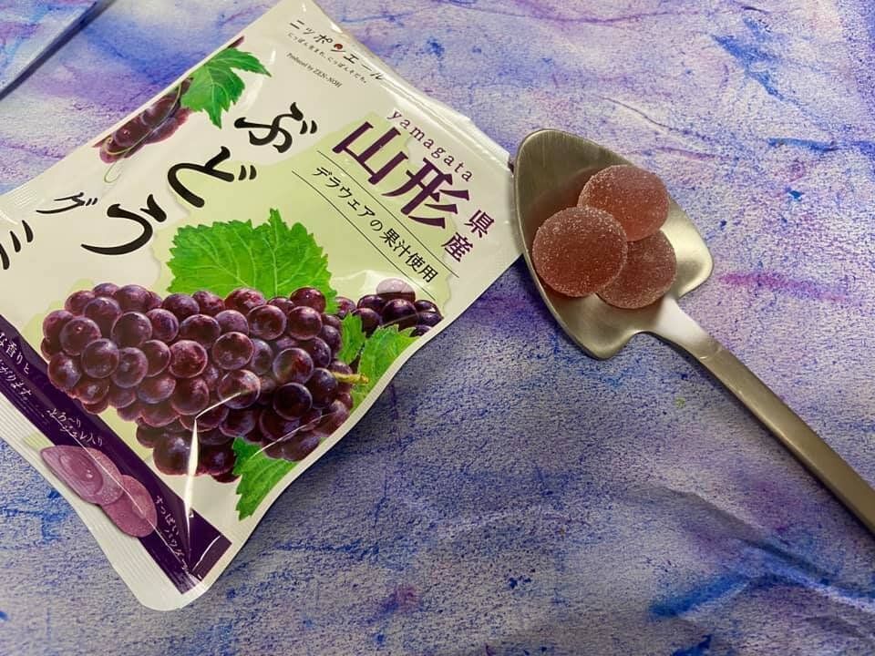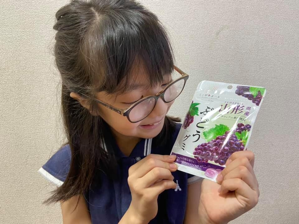 デラウェアの果汁感とグミの食感が楽しめるのでこの味は大人も子どもも好きかも!!と思います。