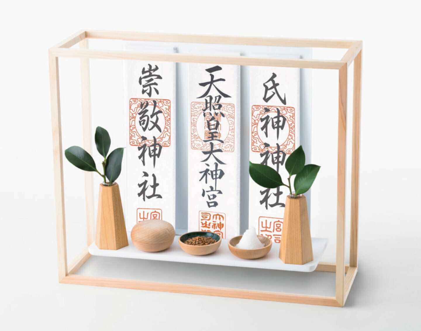 最近は住宅事情を考慮した神棚や宮形(お神札を納めるお宮を模した入れ物)も多彩になってきました。また伝統的に、神棚や宮形を用いないでおまつりする地域もあります。