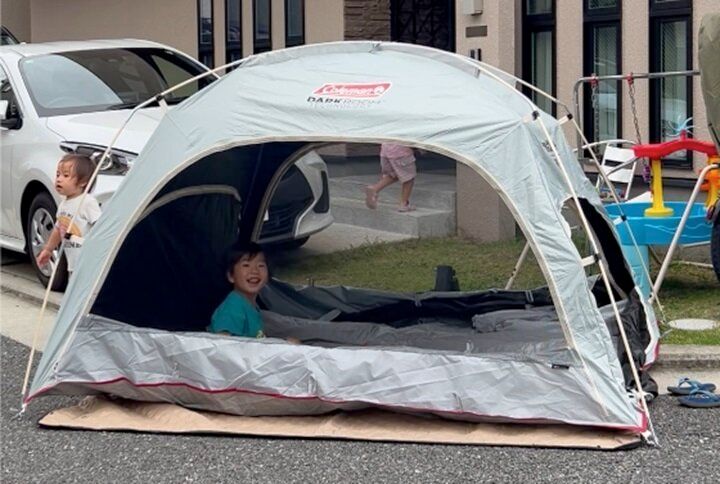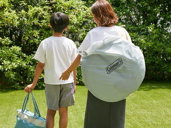 「ここのところ、夏は本当に暑くて。公園に行くにも日よけ用のテントは必需品ですよね」という榊山さん。上の息子さんのサッカー観戦では、校庭にミニテントを置いている人もたくさんいるのだとか。「水分は何リットルも持っていくし、お弁当も炎天下に置くのは恐いし、熱中症も心配。荷物置きになって、日差しをよけられるテントがあるとホントにうれしいです」