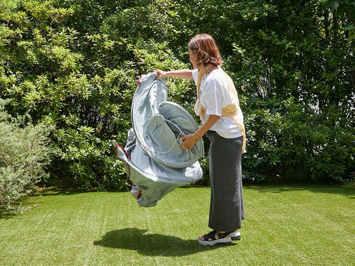 収納袋から出してバサッと広げるだけ! この手軽さも高得点です!