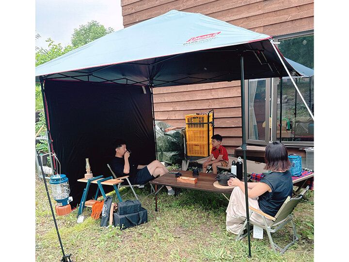 「庭にタープを建てたのは初めてでしたが、初心者でも簡単に建てられて、しかも作りがしっかりしていて安定してました! 暑い日でもタープの下は涼しくて、外で遊びたがる子どももタープ下でなら遊ばせられそう。日差しよけのサイドウォールは、夕方以降急に気温が下がったときは風よけになってくれて、寒くなくてすごく助かりました」(もなか 主婦ライターさん)