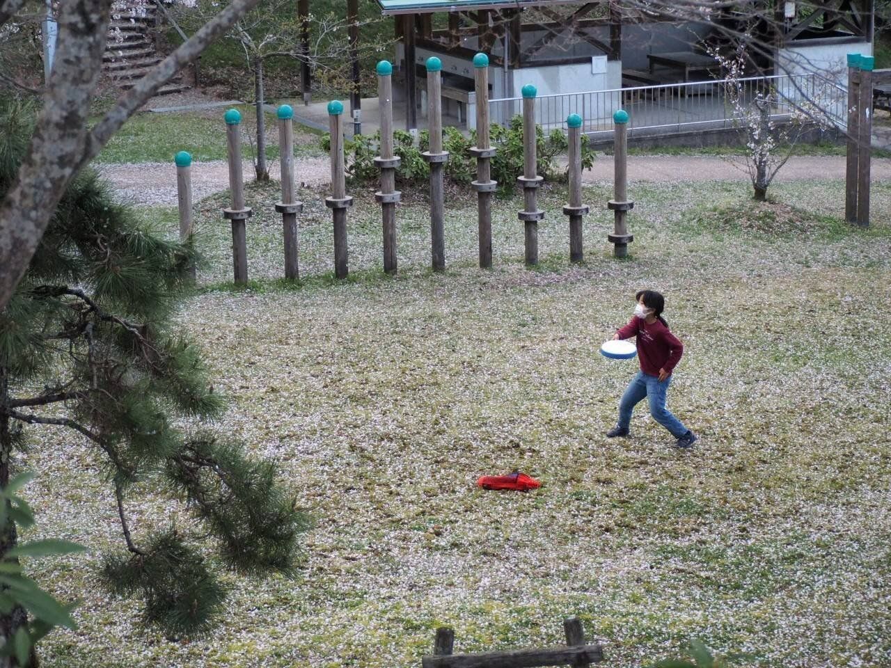 園内には木製の遊具が複数あります。ブランコもあるので、小さなお子さんも楽しめますよ。もちろん広い場所なので画像のようにフリスビー遊びやバドミントンなどもできます!(遊び道具は各自持参してくださいね)
