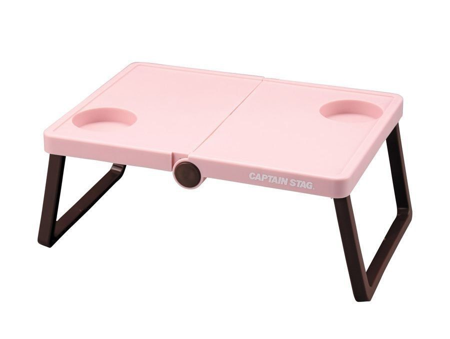 かわいらしいパステルカラーの「CSシャルマン」シリーズで、軽量コンパクトに持ち運びできる、キャプテンスタッグのB5収納テーブル。ドリンクをホールドできるので、小さいながらもちょっとした飲食に便利です。