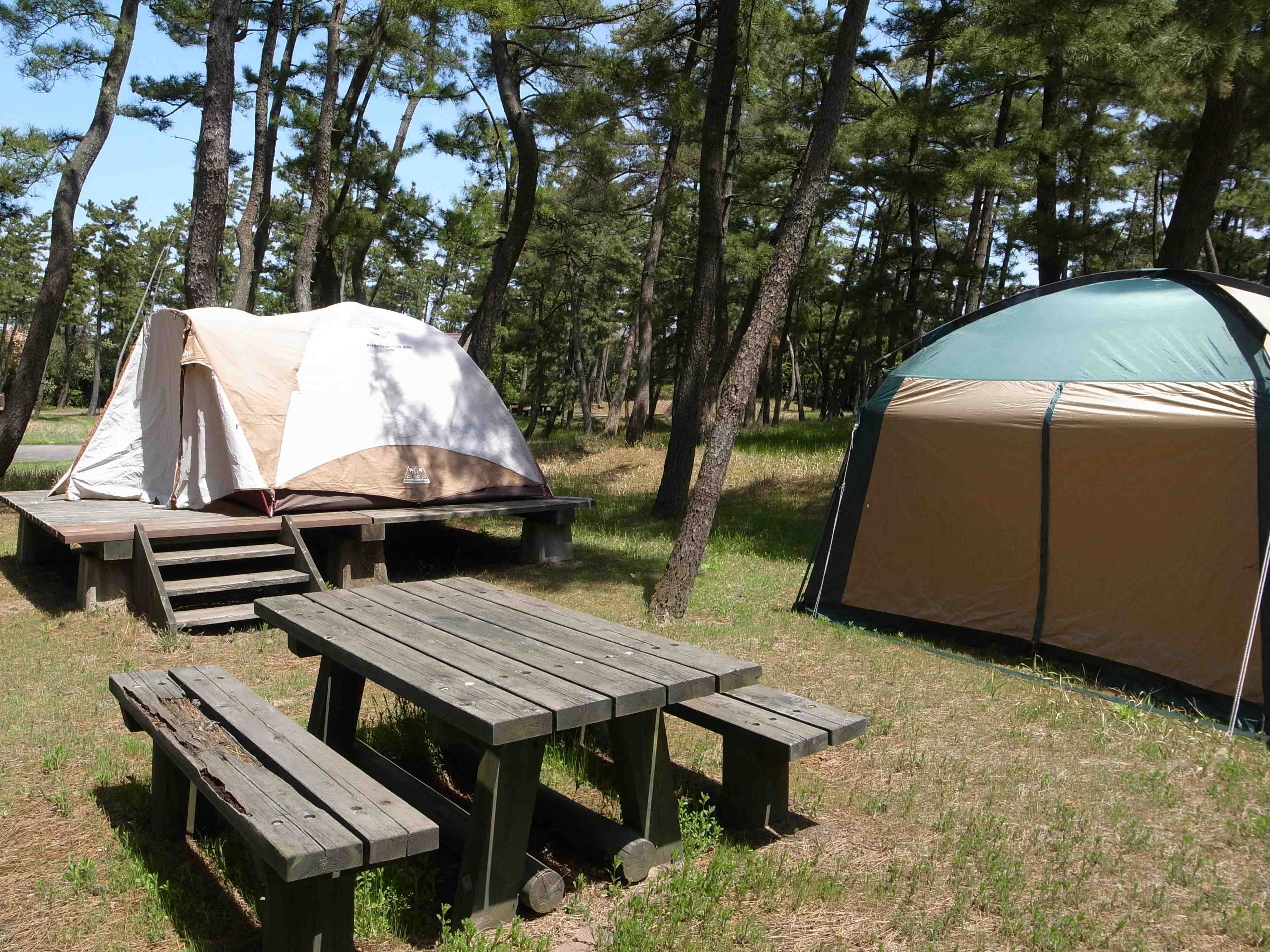 全国に37(2018年5月現在)ある休暇村の中で、キャンプ場が併設されているのは29か所。なかでも「休暇村能登千里浜」は、海まで徒歩3分という好立地と、敷地内にある天然のかけ流し温泉が魅力。GWと夏休み期間限定で、キャンプ初心者でも安心の常設テントを利用した手ぶらプランが用意されています。夕食はカレーとBBQから選び、朝食はホテルのバイキングを利用。温泉利用券もついて手ごろな料金です。