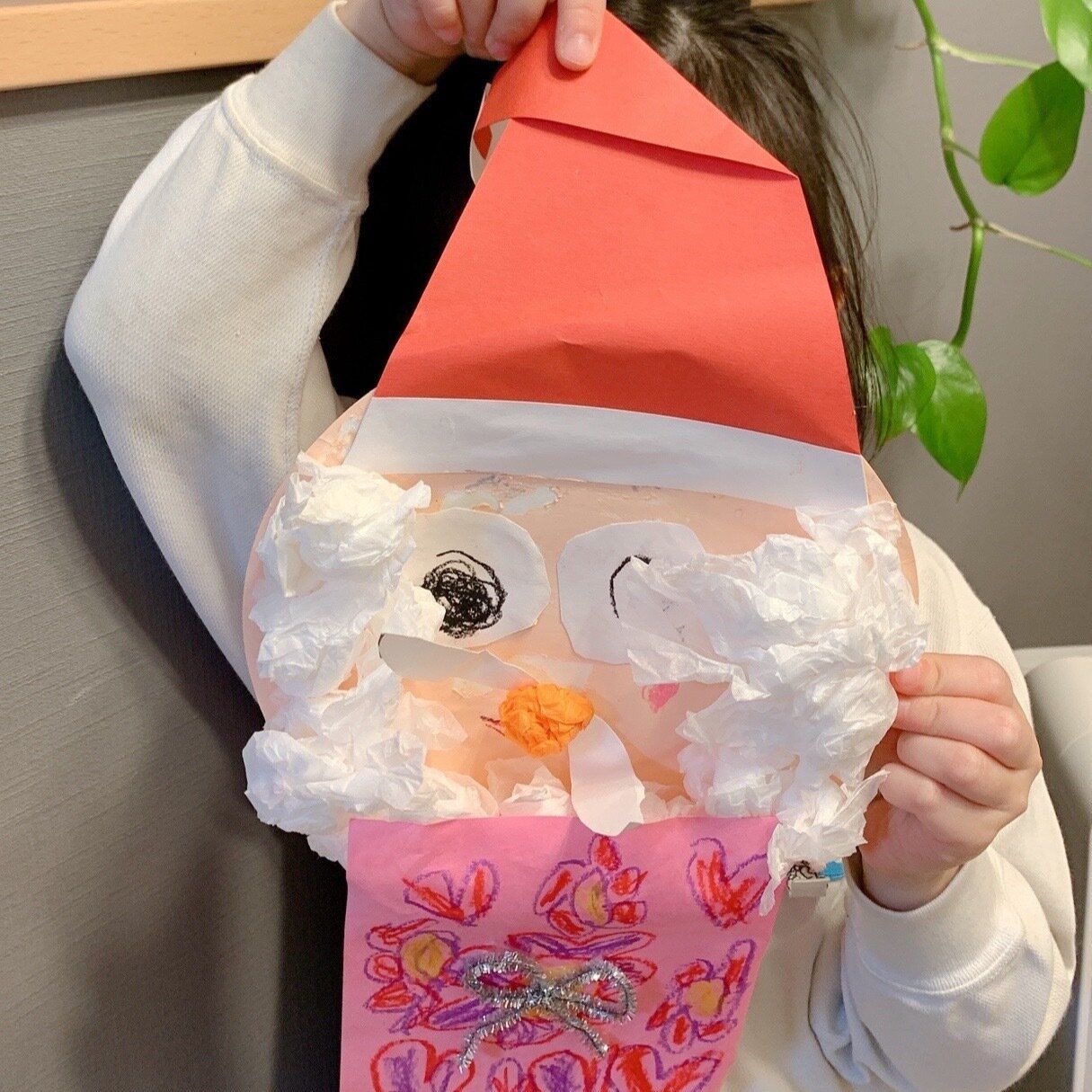 一生懸命作った作品、いろんな方に見てもらいたいですよね。一番フレッシュで旬の作品はみんなが集まるリビングに。作品を貼る際には子どもたちと期限を決めて展示するようにしています。今回はクリスマスの飾りだったのでクリスマスが終わったタイミングがお声掛けのチャンスです。