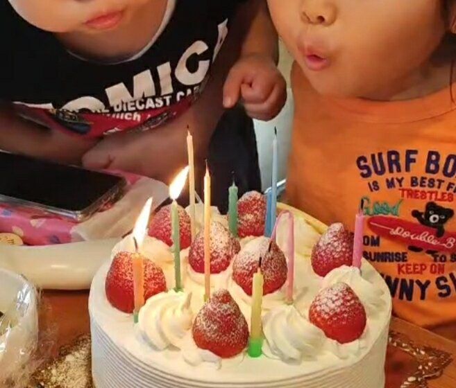 母が用意してくれたちょっと贅沢なお昼を食べて、私が少し席を外して戻ってくると、そこには大きなバースデーケーキが!そしてそのプレートには『おたんじょうびおめでとう みたこちゃん(実際は本名。)』の文字が!