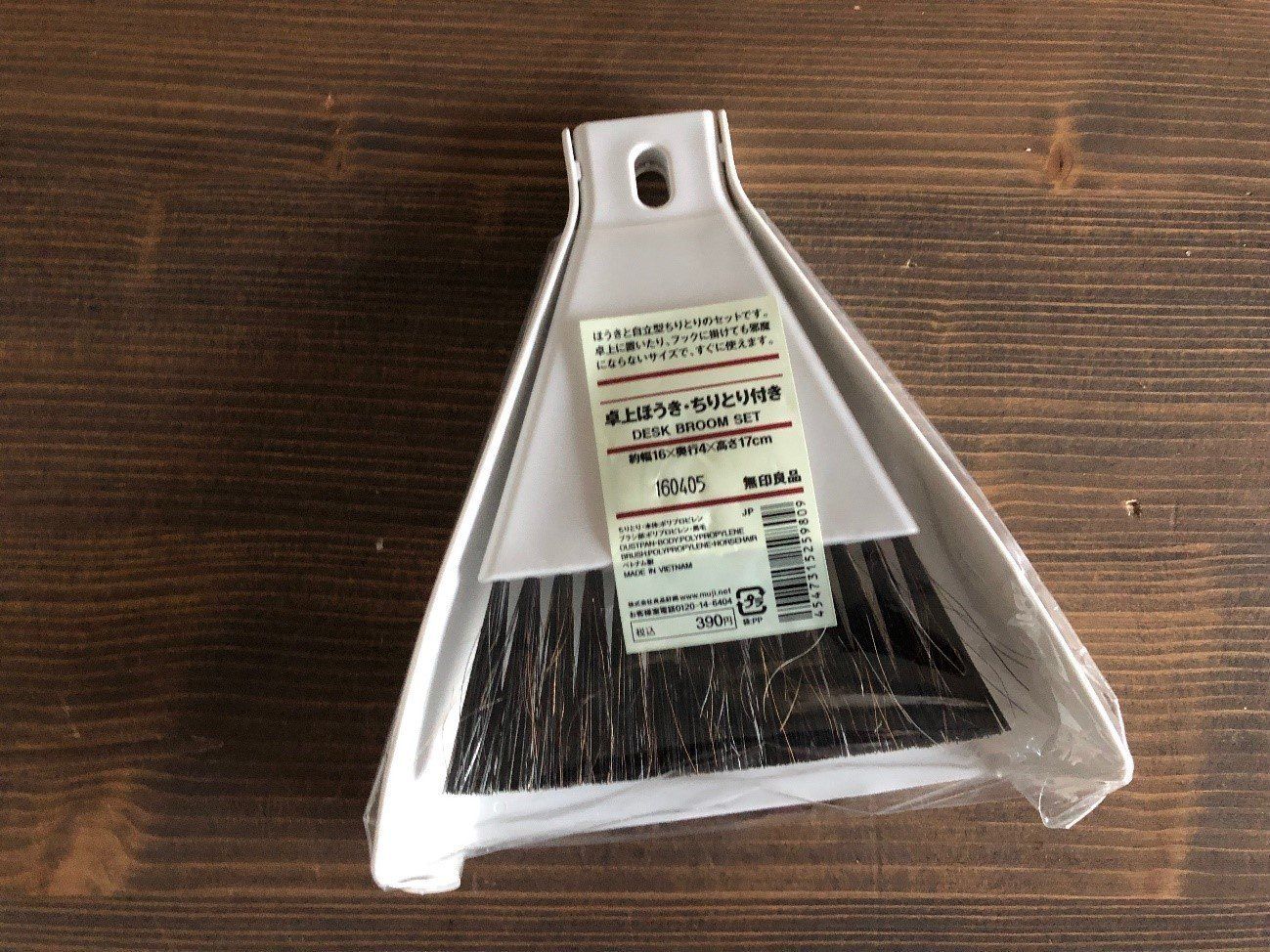 また、ケースの近くに片づけ用の道具があれば、遊びのついでに片づけまでがしやすくなります。サイズ感も重要。そこで、子どもにとって使いやすいサイズの道具としておすすめしたいのが、「卓上ほうき(ちりとり付き)」(税込390円)です。
